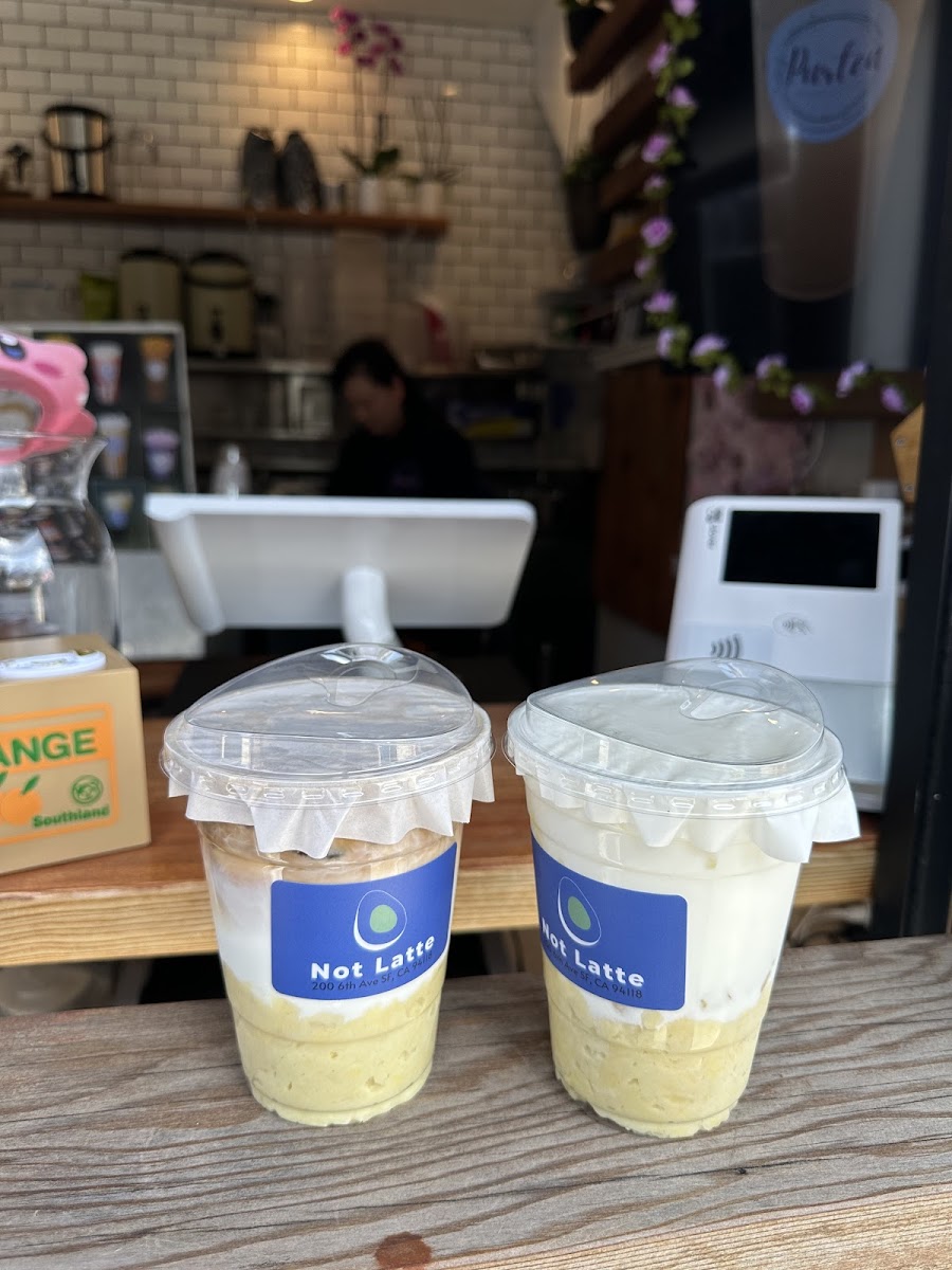Customer reviews reflect the café’s charm and drink quality. Yusi raves about the durian latte, exclaiming it's “fresh, tasty and just works with the coffee or bubble tea.” This deliciously complex drink isn’t just for the adventurous; it’s a reminder of how inventive Not Latte can be. Angela Murp mentions her enjoyment of the tiger matcha milk tea—even if there was some confusion with the boba type—showing that even in busy moments, the café’s offerings shine bright. The friendly staff, as noted by Natalie Tannous, adds to the warm experience, complete with cute stickers as a delightful touch to your visit.